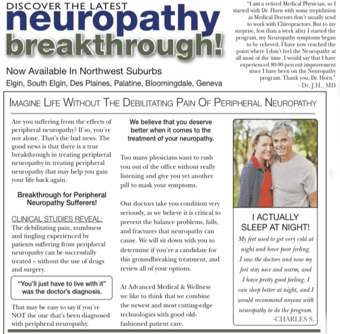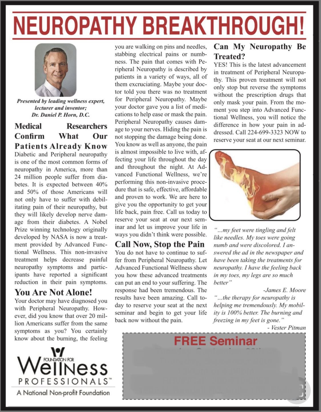 I’m a retired medical physician, and so I started this program withAdvanced Functional Wellness with some skepticism about whetherit would help me, but my neuropathy in both feet was so severe thatI decided to take a chance on it with a chiropractor. As you know,chiropractors and medical doctors don’t always work together