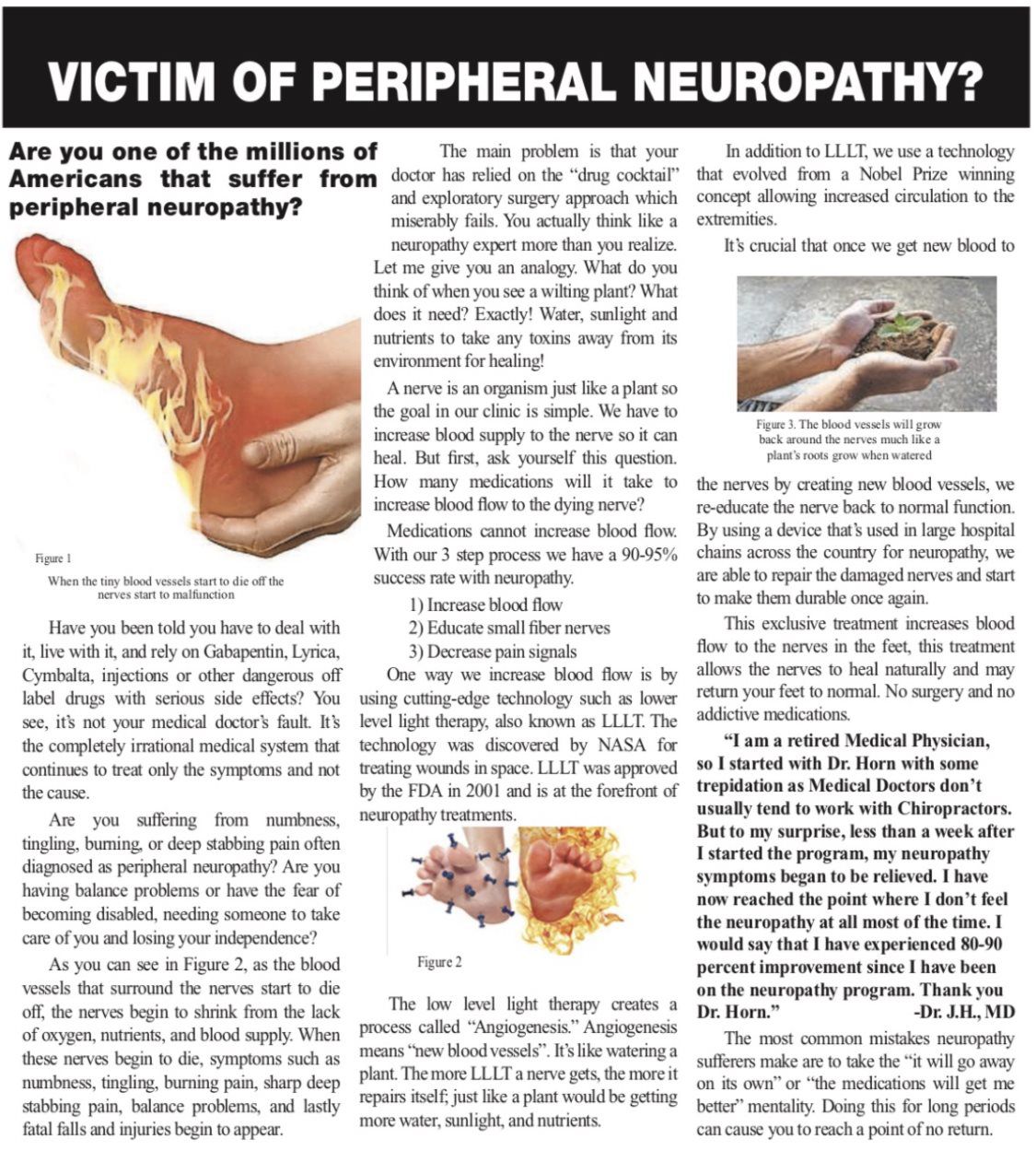 NEUROPATHY PAIN TREATMENT IS LIFE'S WORK FOR HORNS