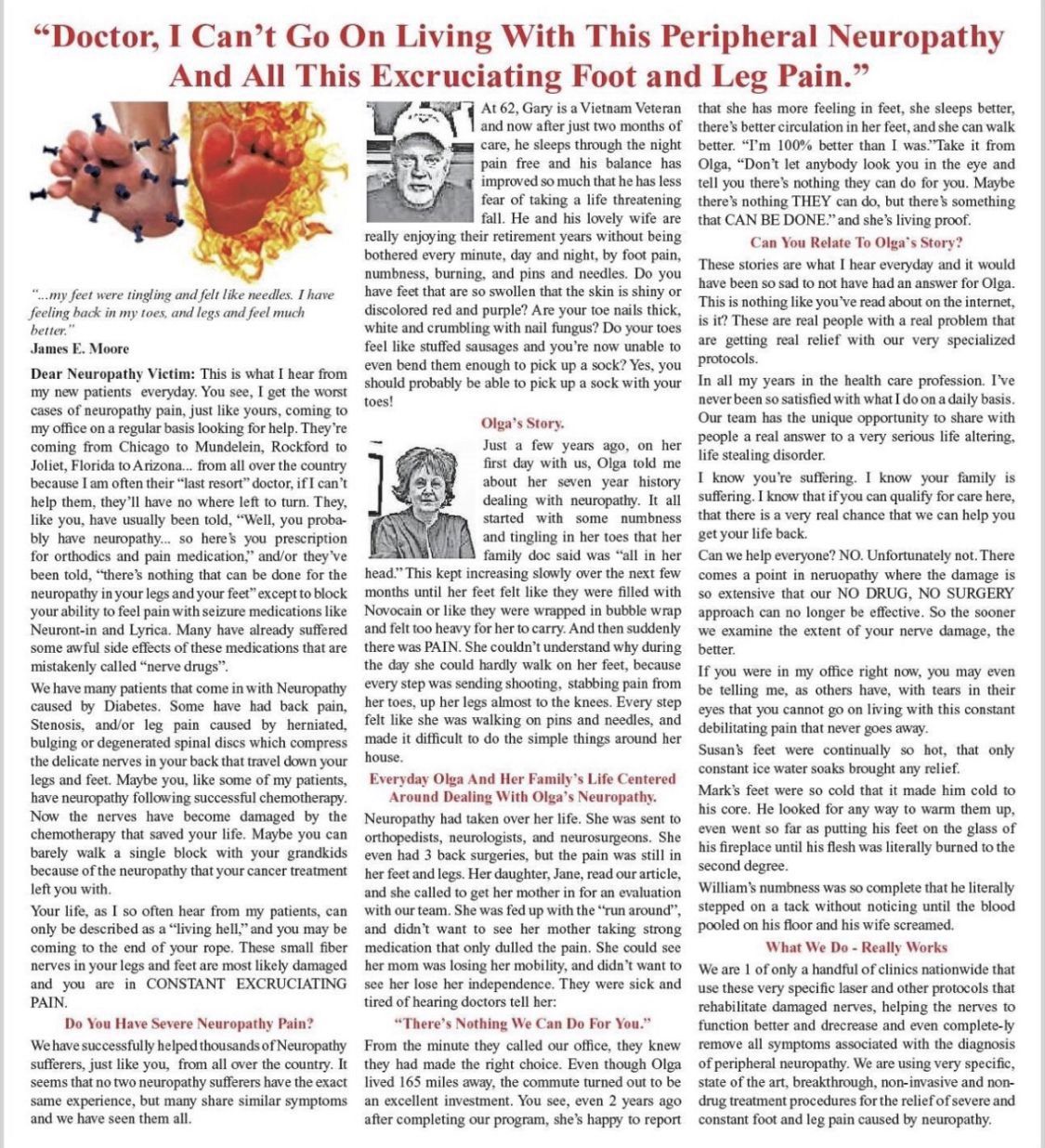 Click on this link to read an article written by our staff: Dear Neuropathy Victim